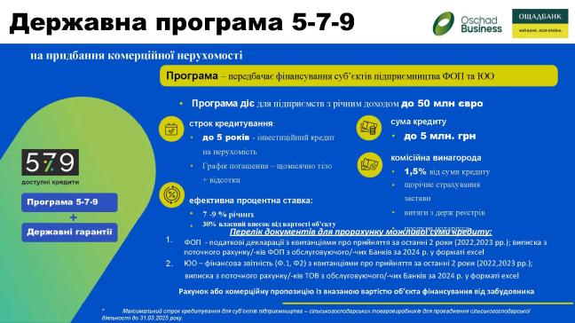 KSM-GROUP повідомляє про унікальну можливість придбання комерційної нерухомості юридичними особами та ФОП у кредит за Програмою 5-7-9 у співробітництві з державним банком АТ ОЩАДБАНК:
